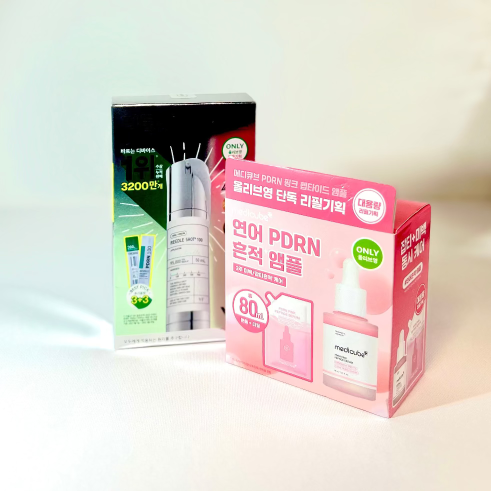 Looking for a more special, targeted skin treatment — without going over budget? This set combines the gentle micro-infusion of Reedle Shot 100 with the soothing, firming power of Medicube’s Salmon Pink Peptide Ampoule.